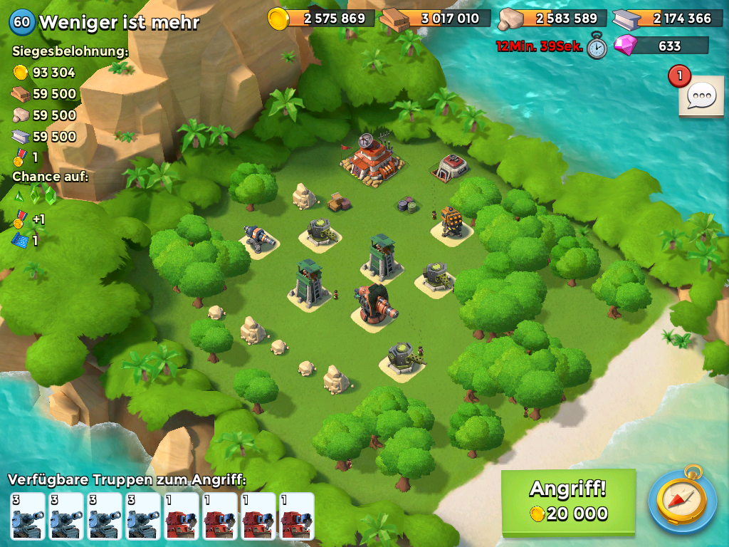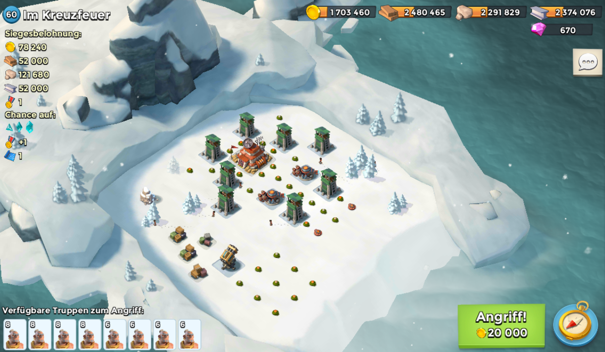 es kommt immer drauf an wer dich angreift. für ALLE gibtves keine optimale Aufstellung, habe ich dir aber mal meine Map angehangen (auch wenn im Level etwas höher). Hier bekomme ich von den meisten Angreifern auch Dias als "Pfand".