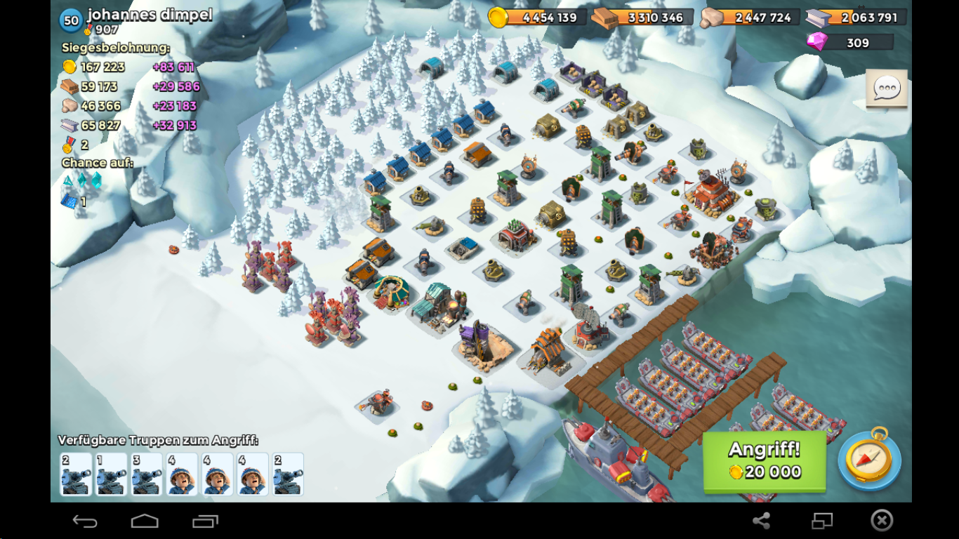 2x 4 Dias ... Volle Ladung bei Level 24 Booten gibt 7 Dias je Angriff und allen verlorenen Truppen