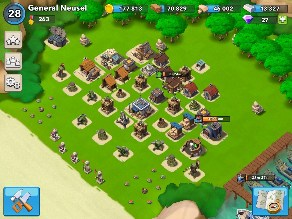 Dieser Spieler hat Glück gehabt vor dem Update ordentlich auszubauen. Das Problem das er jetzt hat sind die enormen Wartezeiten bis er weitermachen kann mit dem HQ Ausbau.