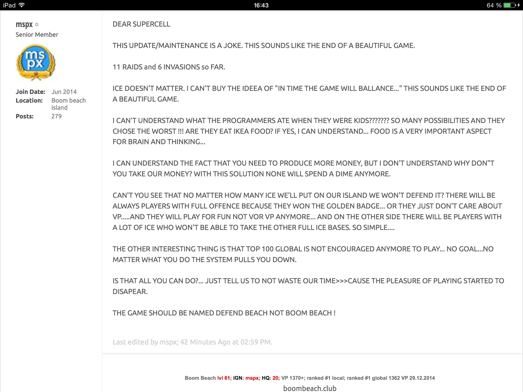 Ich sehe es schon kommen dass ich 20 Punkte vor Platz 1 stehe und die Spezialisten von Supercell dann die Siegespunkte aller Spieler zurücksetzen.