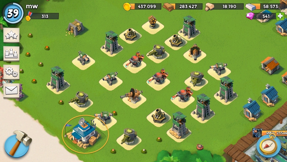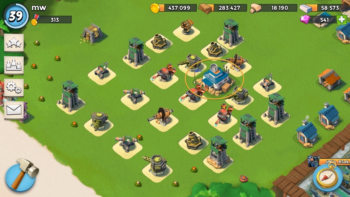 Holz ++ wurde wieder abgestoßen und getauscht zugunsten von 30% Kanonenboot. Das steigert die Angriffskraft.