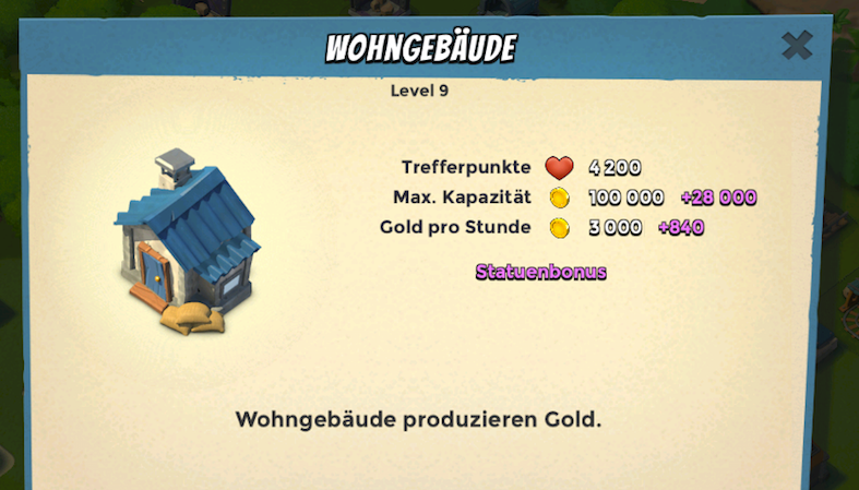 Bei diesem Wohngebäude bringt er zusätzliche 840 Gold, das Aufrüsten von 8 -> 9 brachte dagegen nur 600 Gold mehr.