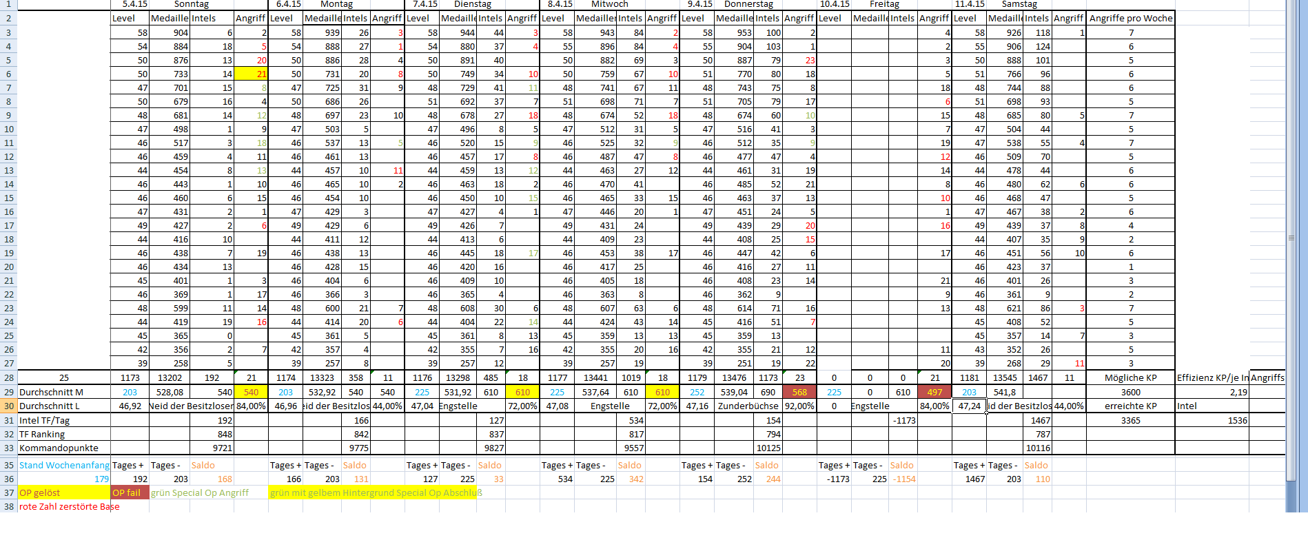 So sah unsere alte aus viel mehr Informationen gehn nicht in eine einzelne Tabelle ,die Truppenstärke haben wir anderweitig erfasst.Inzwischen haben wir sie ein bischen vereinfacht.