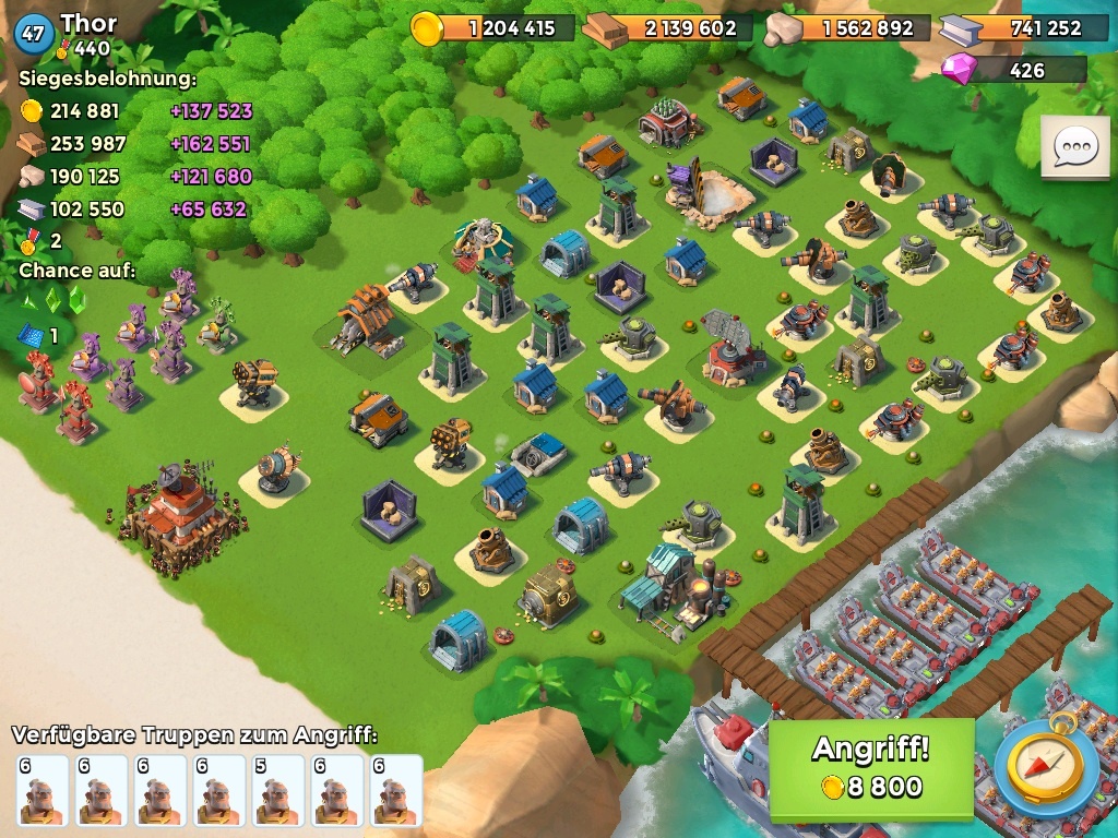 So isses. Ich geh trotzdem alle paar Stunden mal rein und sammle die Ressourcen auf der Insel ein, damit die Schatzkammer voll zum Einsatz kommt.