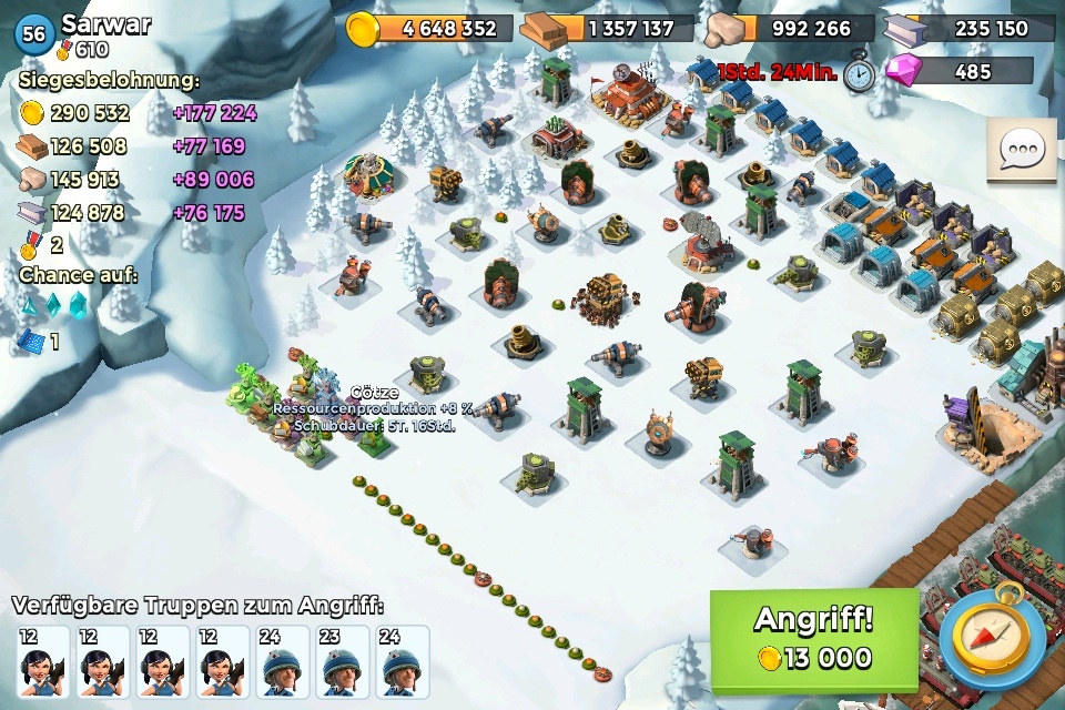 Hatten gestern Abend leider zu wenige Angriffe über, so dass wir uns entschieden haben das Ding zu boykottieren und nur noch Punkte zu holen.