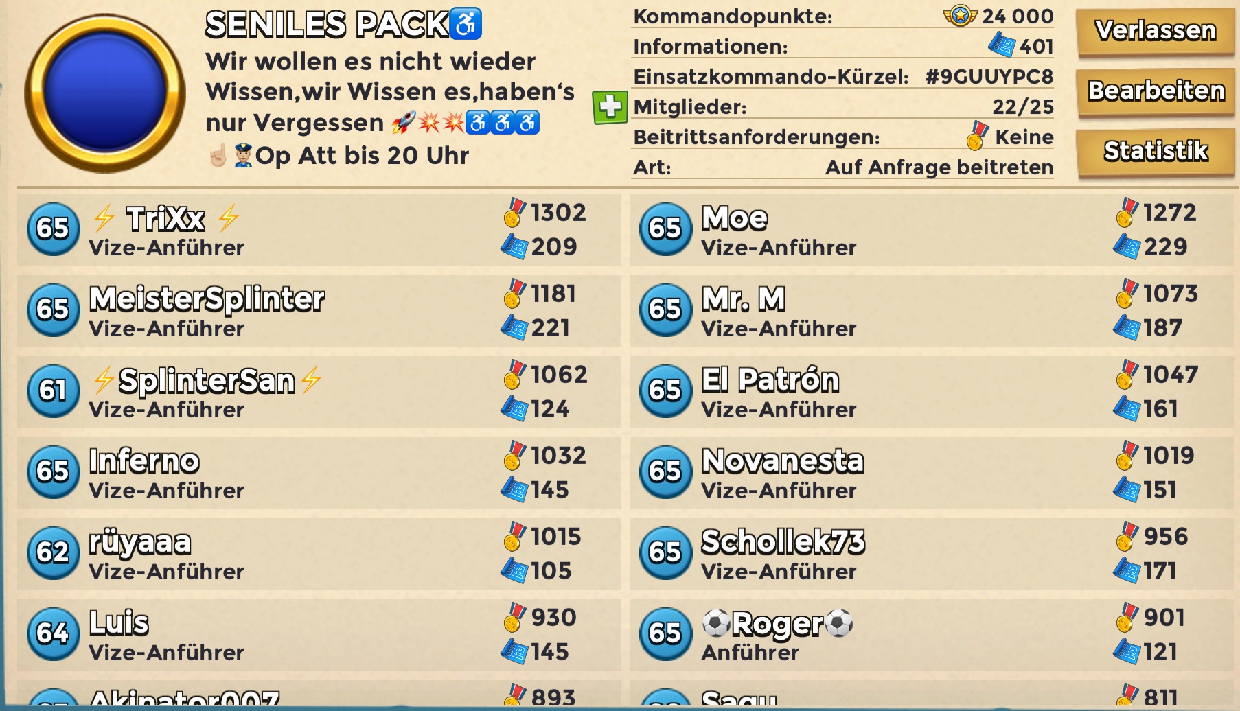 Nein Andy, Du bist der geilste!!! Im übrigen steht es niemandem zu parteiisch zu sein der noch nie mit mir zusammen gespielt hat, dass betrifft die letzten 3 die ihren Senf dazu geben müssen ohne selbst dabei gewesen zu sein. @cRaz Du wolltest damals abwerben, es kam zu einer Abstimmung und 5 von 7 wollten eben nicht, die restlichen 2 sind aber auch geblieben. Was hast Du für ein Problem mit mir, nur weil Dein Abwerben nicht geklappt hat? Mir egal! Das bei Strandläufer 2 Tage im Chat fast nur arabisch geschrieben wurde und dadurch keine Absprachen möglich waren wird auch verschwiegen, dass mir sowas und das ganze Gehoppe eh auf den Zeiger geht ist so und wird auch verschwiegen. SANCHEZ hat das damals nicht nötig gehabt, die haben es als festes Team auf Rang 9 Global geschafft, DAS ist Teamleistung. Nur weil man Hopper nicht mag wird man hier mal eben zerissen.....