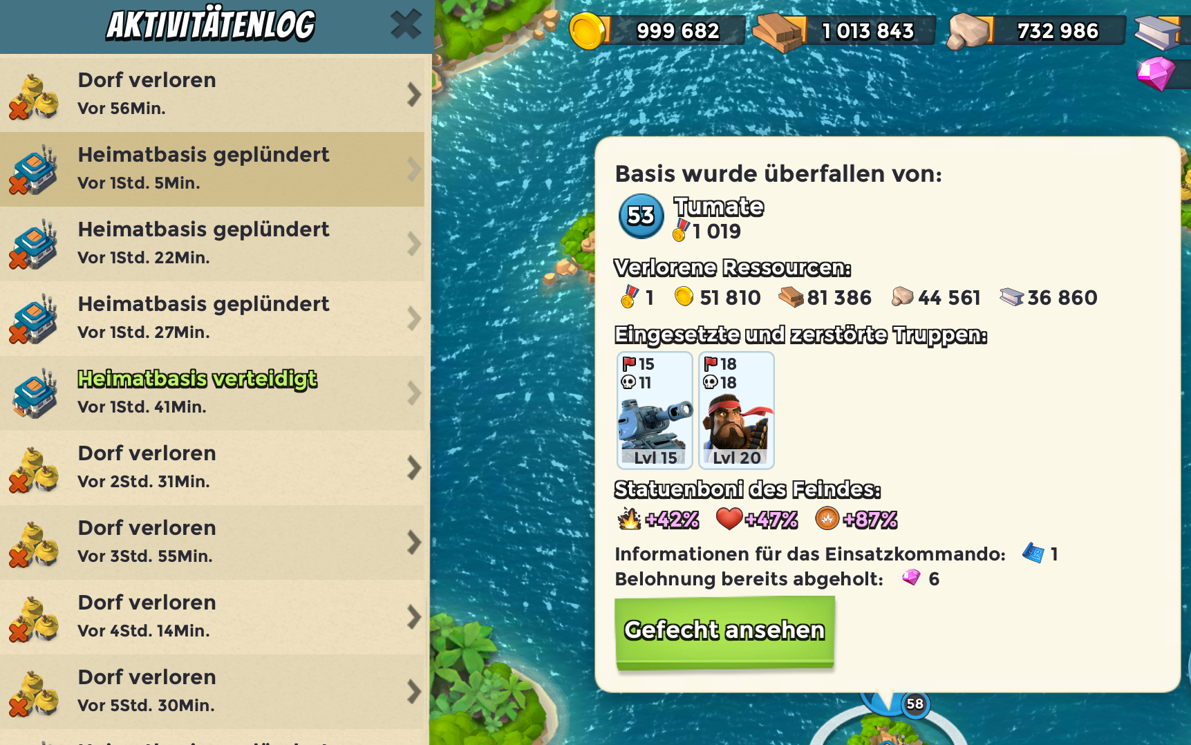 bei mir z.b. habe ich von meinen Angriffen kein video replay!