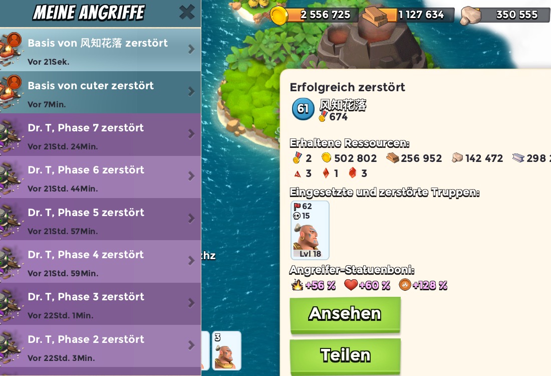 Lv 6 und Lv 7 habe ich nur Ressourcen als Belohnung bekommen.