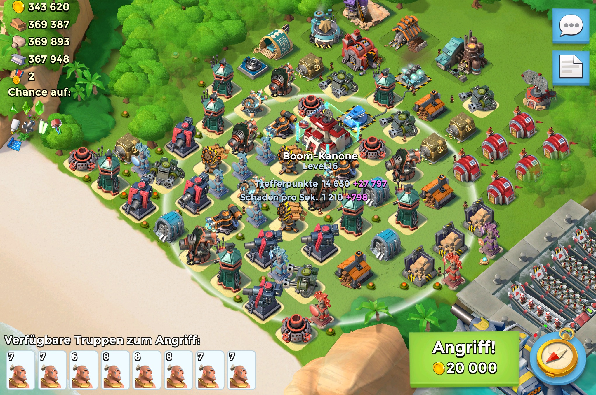 Schocks bevor die Truppen rausgucken. Wenn dir dann die Schocks ausgehen, müssen die Anlagen sich erst drehen und ihr Ziel anvisieren.