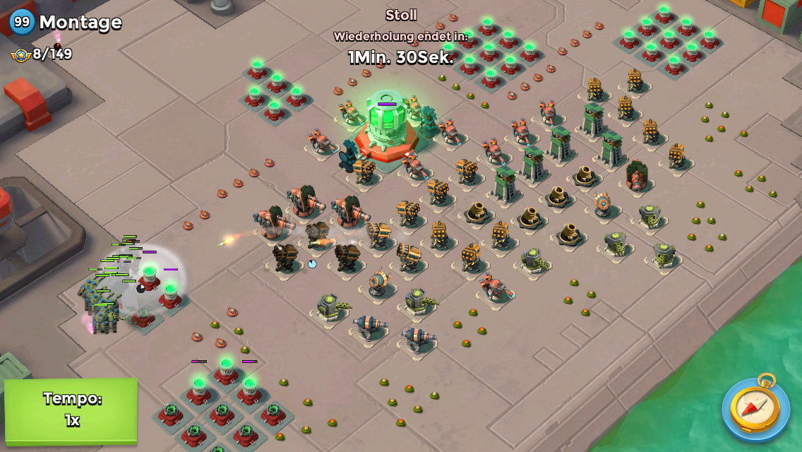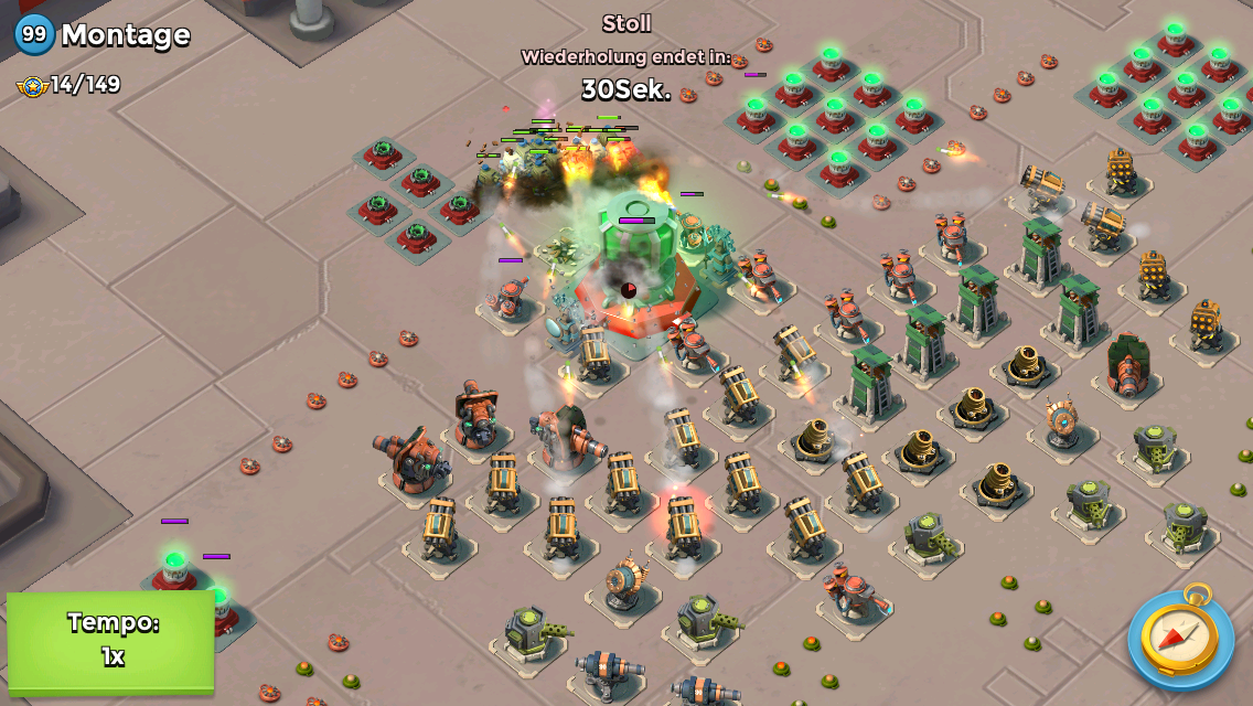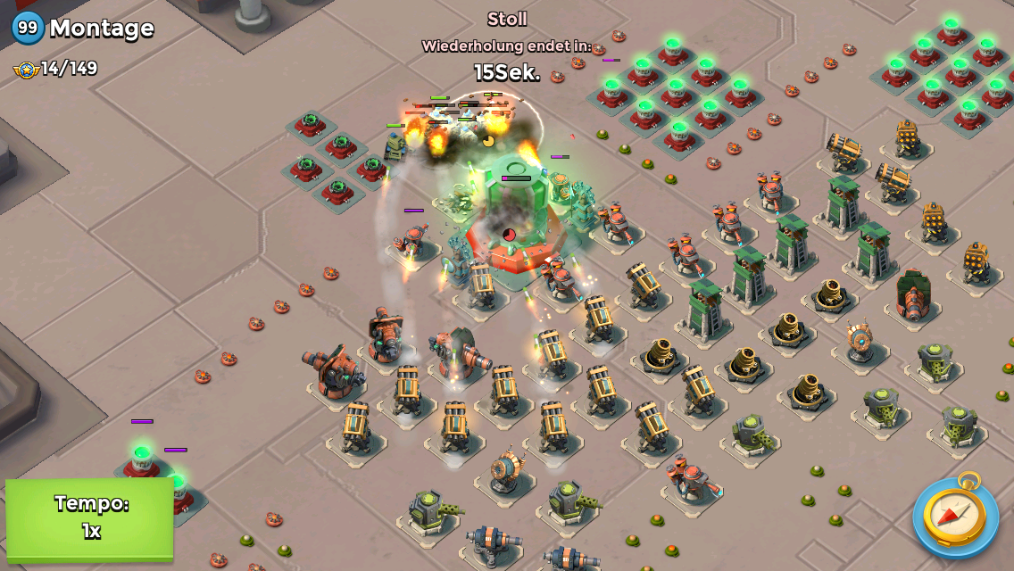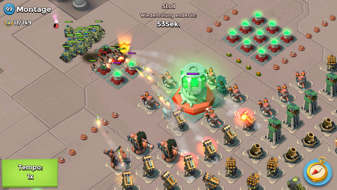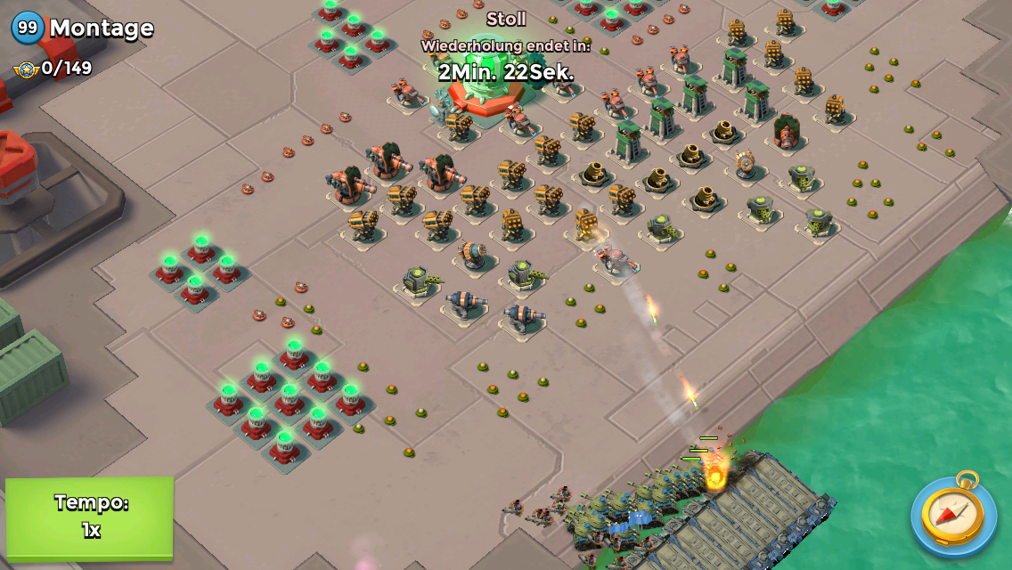 Da du noch keinen Rauch hast, würde ich auf meine Boote Panzer ausbilden, die rechte boom Kanone wegballern.