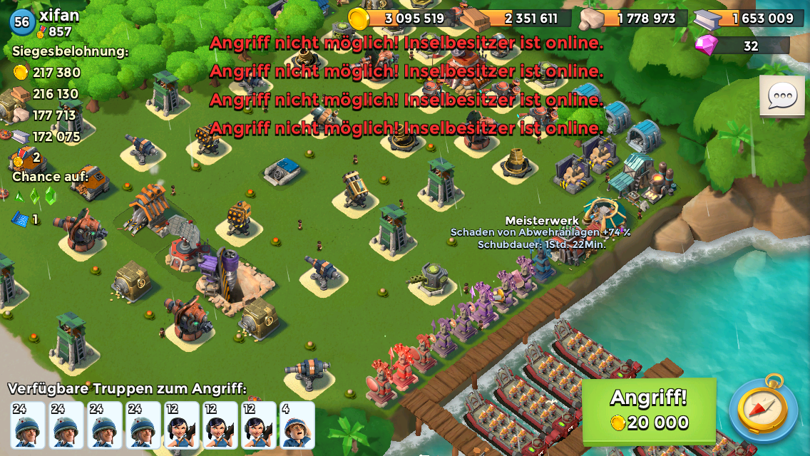 Die letzte smoke werfe ich am Spitz, von da an schocke die die dreier Kombi, 2 mal Kanone und die Boom K.. und den Schockwerfer inkl der drei Kanonen.